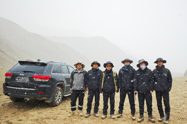 勘查途中的人與事,是高原之巔最動(dòng)人的暖光。我們這支年輕的隊(duì)伍,穿越于5000米高原的山谷之間,像夜空的繁星璀璨奪目,越野車像駱駝一樣在溝谷中步履蹣跚,試圖將我們送往線路開始的地方,但那湍急的河流、嶙峋的溝壑讓它望而卻步。高原的天就像調(diào)皮的小孩,“變臉”就在一瞬間,時(shí)而烈日高照、時(shí)而狂風(fēng)大作,時(shí)而傾盆大雨,時(shí)而漫天飛雪,亦或是冰雹、沙塵暴……,初至高原的我們受盡了這善變氣候的折磨,但卻未能磨滅我們鋼鐵般的意志和“特別能吃苦、特別能戰(zhàn)斗、特別能奉獻(xiàn)”的核地質(zhì)精神。對(duì)講機(jī)中時(shí)而嬉笑嘈雜吵鬧,時(shí)而因?yàn)榈V化點(diǎn)的發(fā)現(xiàn)開心自豪,時(shí)而吐槽勘查路線的艱難困苦,時(shí)而提醒彼此注意安全溫暖體貼。正是這些平凡卻滾燙的瞬間,拼湊成了高原勘查路上最珍貴的記憶,也讓每一步前行都充滿了向光的力量。