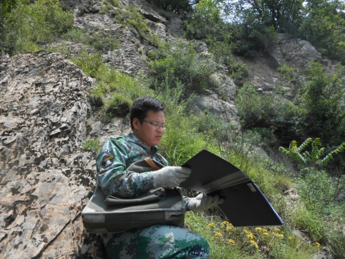我是一名新員工,來單位工作快一年了,而陳哥參加地質(zhì)工作已經(jīng)8年多了,地質(zhì)經(jīng)驗(yàn)比較豐富。這是6月21日,我和陳哥在工作區(qū)做地質(zhì)物探測量過程中的幾句交談。那天恰是端午假期的第二天,但我們雙槽地區(qū)鈾礦地質(zhì)調(diào)查項(xiàng)目組一大早就上山開展工作,按工作分配兩人一組,我和陳哥的任務(wù)是第24條線。由于近年來國家鼓勵退耕還林,以至于這些山上植被茂密,荊棘密布。陳哥參照地圖,按任務(wù)路線讓我用羅盤打10°方位角,然而沿著這個(gè)方向看向前方,基本無路可尋,而且地勢越來越高,越來越陡。