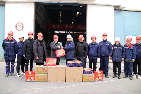 趙銅飛一行為鉬業(yè)公司春節(jié)堅守在工作崗位的全體職工送上了堅果、水果、點心和飲料等節(jié)日慰問品,并深入氧化鉬車間與生產(chǎn)車間負責(zé)人等工作人員就生產(chǎn)運行情況進行了詳細交流和溝通,王得權(quán)、王強等就鉬業(yè)公司春節(jié)及2023年全年生產(chǎn)工作安排進行了現(xiàn)場匯報。