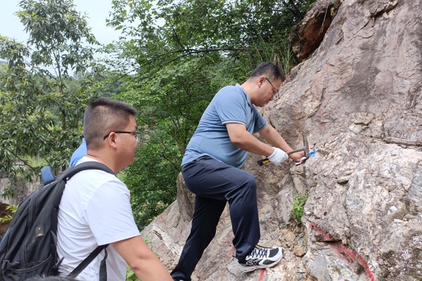 7月20-21日,公司黨委副書記、總經(jīng)理王得權(quán),副總經(jīng)理、工會主席胡祺一行深入地質(zhì)調(diào)查院陜西省商南縣鳳凰寨地區(qū)鋰鈹?shù)认∮薪饘俚V普查、陜西省商南縣麻地溝地區(qū)鋰礦普查、陜西省丹鳳縣雙槽溝鈾稀有金屬普查及丹鳳地區(qū)鈾-多金屬資源調(diào)查評價項目檢查指導(dǎo)工作,并“送清涼”慰問一線職工。公司生產(chǎn)安全部部長崔海峰、技術(shù)質(zhì)量部部長程德進(jìn)陪同。