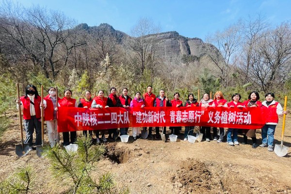 在第44個植樹節(jié)之際,團員青年志愿服務隊來到照金共建林,以實際行動積極參與植樹造林,倡導綠色理念,踐行學雷鋒志愿服務精神。植樹現(xiàn)場,團青志愿者們分工協(xié)作,揮锨揚鎬,扶苗挖坑,悉心種樹,踏實撫平,提水澆灌……經(jīng)過團青志愿者們的辛勤勞作,錯落有致、迎風挺立的松苗綻放出春天的勃勃生機,為秦嶺大地增添了一份綠意。