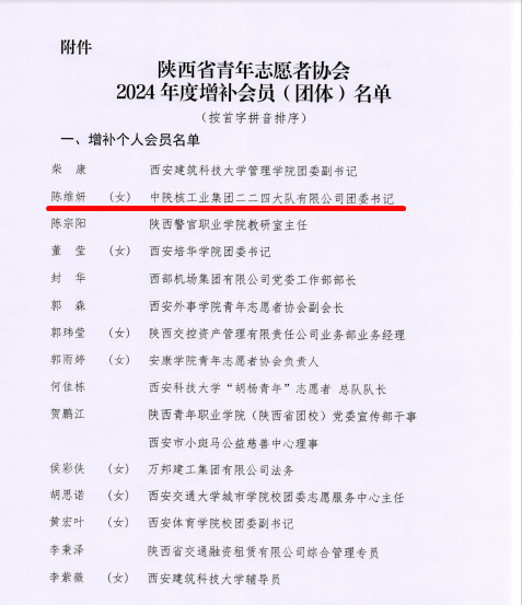 近日,公司志愿服務(wù)隊(duì)獲批成為陜西青年志愿者協(xié)會(huì)團(tuán)體會(huì)員,公司團(tuán)委書記、黨群工作部副部長(zhǎng)陳維妍獲批成為陜西青年志愿者協(xié)會(huì)個(gè)人會(huì)員。
