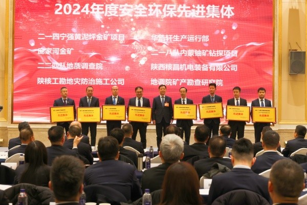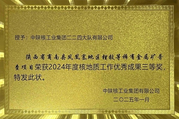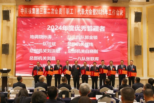 近日,中陜核工業(yè)集團(tuán)召開了三屆二次會員(職工)代表大會暨2025年工作會,會上表彰了先進(jìn),公司捷報頻傳,連續(xù)榮獲多項(xiàng)榮譽(yù)!公司榮獲了中陜核集團(tuán)2024年度“創(chuàng)新創(chuàng)業(yè)獎”,公司黨委書記、董事長郭金鎖榮獲中陜核集團(tuán)2024年度“優(yōu)秀管理者”稱號,中陜核新材料有限公司榮獲中陜核集團(tuán)2024年度“精益管理獎”,地質(zhì)調(diào)查院榮獲中陜核集團(tuán)2024年度“先進(jìn)集體”和“安全環(huán)保先進(jìn)集體”,地質(zhì)調(diào)查院《陜西省略陽縣硤口驛銅多金屬礦普查》榮獲中陜核集團(tuán)2024年度“核地質(zhì)工作優(yōu)秀成果二等獎”,地質(zhì)調(diào)查院《陜西省商南縣鳳凰寨地區(qū)鋰鈹?shù)认∮薪饘俚V普查》榮獲中陜核集團(tuán)2024年度“核地質(zhì)工作優(yōu)秀成果三等獎”,地質(zhì)調(diào)查院總工程師雷旺勝、中陜核新材料有限公司氧化鉬車間主任劉建文、中陜核工業(yè)集團(tuán)測繪院有限公司規(guī)劃中心副主任袁晨鑫榮獲中陜核集團(tuán)2024年度“先進(jìn)個人”稱號,中陜核工業(yè)集團(tuán)測繪院有限公司副總經(jīng)理王亞光、地質(zhì)調(diào)查院項(xiàng)目負(fù)責(zé)卞利榮獲中陜核集團(tuán)2024年度“安全環(huán)保先進(jìn)個人”稱號,地質(zhì)調(diào)查院《陜西省略陽縣硤口驛銅多金屬礦普查》項(xiàng)目陳偉男、劉雷、陳輝、劉彤旭、黃家瑄,《陜西省商南縣鳳凰寨地區(qū)鋰鈹?shù)认∮薪饘俚V普查》項(xiàng)目李雷、李剛、程佳孝、馬總戰(zhàn)、張浩軒榮獲中陜核集團(tuán)2024年度“核地質(zhì)工作先進(jìn)個人”稱號。