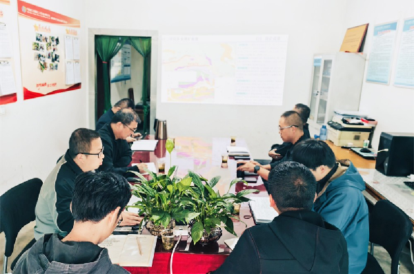 郭金鎖一行首先為項(xiàng)目組送上牛奶、糕點(diǎn)等慰問品,向奮戰(zhàn)在一線的項(xiàng)目人員致以親切問候;隨后,詳細(xì)問詢了項(xiàng)目進(jìn)展情況。項(xiàng)目負(fù)責(zé)人陳偉男就階段性成果、施工進(jìn)度、技術(shù)質(zhì)量管控及后續(xù)工作計(jì)劃向檢查組作了詳細(xì)匯報(bào)??登迩褰Y(jié)合項(xiàng)目實(shí)際,系統(tǒng)總結(jié)并深入剖析了當(dāng)前面臨的技術(shù)難點(diǎn)與關(guān)鍵問題,他要求,一要高度重視隊(duì)伍建設(shè),不斷提升團(tuán)隊(duì)專業(yè)技術(shù)水平與綜合素質(zhì),以過硬實(shí)力贏得市場認(rèn)可;二要勇于創(chuàng)新、勤于思考,積極運(yùn)用新方法、新思路開展深部驗(yàn)證工作,深化地質(zhì)認(rèn)識,提高找礦效果。楊夏強(qiáng)調(diào),要牢固樹立安全發(fā)展理念,始終將安全生產(chǎn)作為一切工作的首要前提,時(shí)刻繃緊安全之弦,筑牢安全之基。