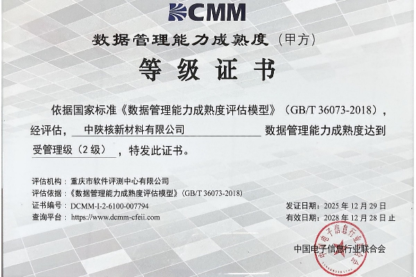 近日,中陜核新材料有限公司憑借在節(jié)能減排和數(shù)據(jù)管理領(lǐng)域的持續(xù)投入與創(chuàng)新實(shí)踐,先后獲得能源管理體系認(rèn)證證書和數(shù)據(jù)管理能力成熟度評(píng)估(DCMM)二級(jí)證書。這兩項(xiàng)重要資質(zhì)的取得,標(biāo)志著新材料公司在可持續(xù)發(fā)展和數(shù)字化轉(zhuǎn)型道路上邁出了堅(jiān)實(shí)步伐,綜合競(jìng)爭(zhēng)力再上新臺(tái)階。