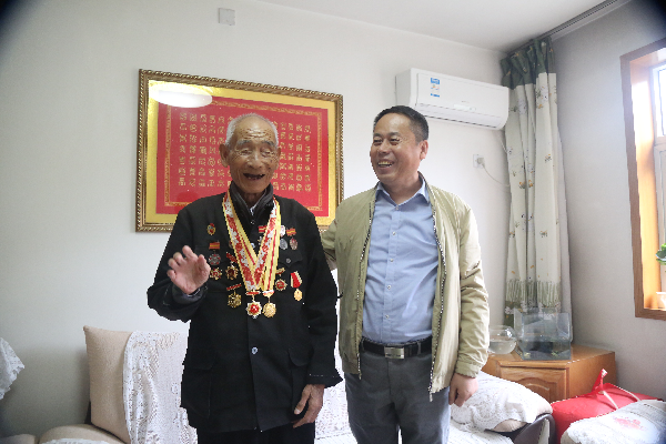 9月25日,總經(jīng)理郭金鎖代表公司黨委會同灞橋區(qū)退役軍人事務(wù)處深入建國前參加革命,榮獲抗美援朝一等功一次、二等功一次、三等功二次的老戰(zhàn)士宋成德家中,為老人頒發(fā)、佩戴紀念章。