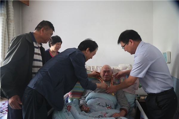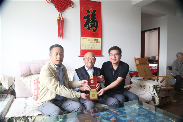 對異地居住的騰日暖、鄭慶貴老人、因病故去的2位老同志,職能部門親自將紀念章送到家屬手中,表達了對老人的敬意和家屬的慰問。
