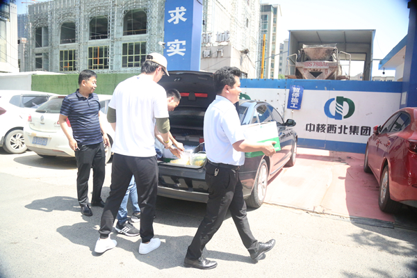 端午佳節(jié)來臨之際,6月24日下午,公司工會主席陳冰帶領(lǐng)工會辦相關(guān)人員一行,到陜核大廈建設(shè)項目送清涼,為一線職工送去了粽子、礦泉水、水果等慰問品和佳節(jié)問候。