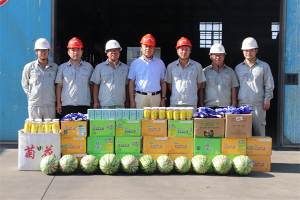 田社生親手將西瓜、菊花、茶葉、冰糖和清涼飲品等送到一線職工手中,并與車間職工親切交談,詳細(xì)詢問大家身體健康、生產(chǎn)生活等情況,并強(qiáng)調(diào),夏季天氣持續(xù)高溫,鉬業(yè)公司要從就餐、住宿、改善工作環(huán)境等多方面入手,多舉措保障職工身體健康;要時(shí)刻關(guān)注高溫天氣狀況,切實(shí)做好防暑降溫及安全管理工作,從根本源頭上確保生產(chǎn)經(jīng)營健康安全平穩(wěn)有序。