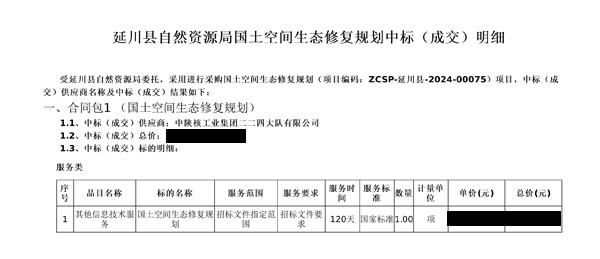 近日,從陜西省政府采購網(wǎng)站獲悉,地質(zhì)調(diào)查院成功中標(biāo)延川縣國土空間生態(tài)修復(fù)規(guī)劃項(xiàng)目。