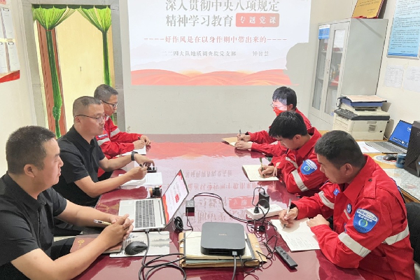 會(huì)上,鐘智慧領(lǐng)學(xué)了學(xué)習(xí)貫徹習(xí)近平總書記關(guān)于深入貫徹中央八項(xiàng)規(guī)定精神學(xué)習(xí)教育的重要講話和重要指示精神。隨后,鐘智慧以“好作風(fēng)是在以身作則中帶出來的”為主題,講授深入貫徹中央八項(xiàng)規(guī)定精神學(xué)習(xí)教育專題黨課。他指出,開展深入貫徹中央八項(xiàng)規(guī)定精神學(xué)習(xí)教育,是現(xiàn)階段黨支部建設(shè)工作的核心任務(wù)之一,關(guān)乎黨支部的凝聚力與戰(zhàn)斗力。他結(jié)合野外地質(zhì)工作實(shí)際,強(qiáng)調(diào),艱苦的工作環(huán)境更需良好的工作作風(fēng),全體項(xiàng)目人員要以身作則,時(shí)刻保持嚴(yán)謹(jǐn)務(wù)實(shí)的工作態(tài)度,嚴(yán)格遵守各項(xiàng)規(guī)章制度,以實(shí)際行動(dòng)踐行中央八項(xiàng)規(guī)定精神,充分發(fā)揮模范帶頭作用。
