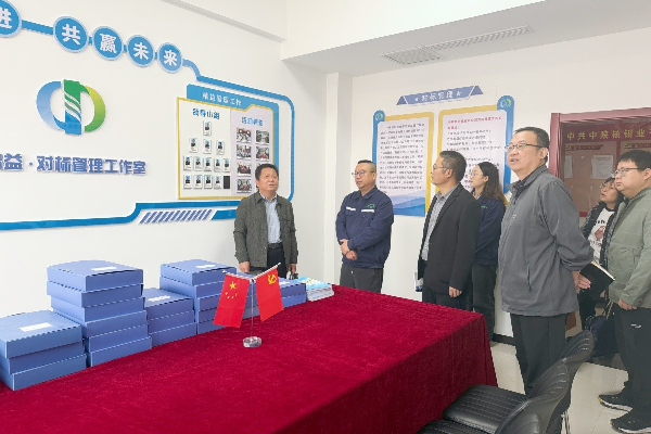 調(diào)研組一行首先深入企業(yè)一線,全面了解新材料公司發(fā)展歷程、生產(chǎn)經(jīng)營現(xiàn)狀及核心業(yè)務(wù)布局。在職工食堂,調(diào)研組細(xì)致核查了餐具消毒設(shè)備配置、餐食留樣規(guī)范管理、就餐環(huán)境舒適度及食品安全全流程保障措施,對企業(yè)后勤保障的精細(xì)化水平給予充分認(rèn)可。隨后,調(diào)研組前往新材料公司辦公樓,實地參觀了黨員之家、渭南市示范性勞模創(chuàng)新工作室及精益對標(biāo)管理工作室等功能場所,通過現(xiàn)場查看臺賬資料、聽取情況介紹,直觀掌握了新材料公司在基層黨建引領(lǐng)、技術(shù)創(chuàng)新突破、精益管理提效等方面的實踐成果。