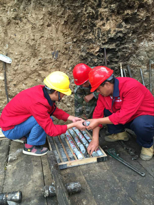 項(xiàng)目經(jīng)理劉連友和機(jī)長(zhǎng)王文忠檢查了周邊作業(yè)安全環(huán)境,查看了機(jī)臺(tái)上的螺絲是否松動(dòng),機(jī)械運(yùn)轉(zhuǎn)是否正常。劉經(jīng)理叮囑大家一定要注意安全。是呀,在這里如若漠視了安全,那么一切都將歸零。要提巖心了,卸開(kāi)巖心管、倒出巖心、放置另一個(gè)巖心管、開(kāi)鉆等過(guò)程有條不紊。伴隨一陣機(jī)器轟鳴聲,又一次取巖心工作開(kāi)始了??粗且粡垙埬贻p的面孔,二十多歲的大小伙子,稚嫩又滿是堅(jiān)毅的臉上,流露著靦腆卻又老成、自信的神情。在這樣的青春年華,有人流連都市的燈紅酒綠;有人躺在溫暖的床上,做著一夜成名的春秋大夢(mèng);而他們,我眼前這群少年老成的年輕人,在這山清水秀的大山里揮灑著汗水,奉獻(xiàn)著他們的青春年華。