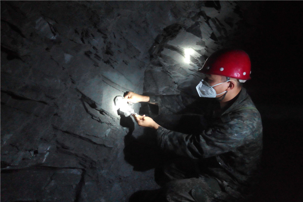 由于板倉溝位于深山溝谷、密林叢中,在這里,沒有車水馬龍,只有縱橫交錯的茂密植被和散落遍地的斷蓬枯草,正午的烈日烤炙著大地,焦灼發(fā)燙的陽光讓我們大汗淋漓、汗流浹背,上衣緊貼著前胸后背,但這不僅沒能阻止我們?nèi)⊥寥阑綐拥哪_步,還磨練了我們吃苦耐勞的工作意志;開展探槽編錄時,有的目標(biāo)位置離駐地較遠(yuǎn)且無法通車,我們便徒步幾小時穿越叢林、翻過高山,為盡快完成當(dāng)天工作任務(wù),到達(dá)目標(biāo)位置后我們就立即開展編錄工作,晚上回到駐地,再加班共同整理當(dāng)天工作資料;進(jìn)行探槽時,我們按照原始記錄整理、紙質(zhì)版繪圖、后期檢查、描繪電子版圖的工作程序嚴(yán)格進(jìn)行,雖然過程繁瑣,但我們始終一絲不茍、認(rèn)真對待;再來談?wù)効拥谰庝浌ぷ?,?dāng)坑道工程完成一階段工作后,項(xiàng)目人員需對坑道進(jìn)行地質(zhì)編錄,坑道空氣含有大量粉塵必須佩戴口罩,一般下坑作業(yè)時間為兩個小時以上,如遇特殊地質(zhì)環(huán)境情況,作業(yè)時間將會延長....在這樣復(fù)雜的作業(yè)環(huán)境里,我們揮汗如雨、忍暑耐寒,以實(shí)際行動詮釋著核地質(zhì)人的“三光榮”、“三特別”精神,艱苦奮斗在第一線,不斷克服各種困難,爭取早日取得良好的找礦成果。