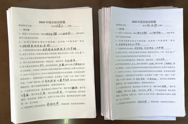 知識(shí)答題強(qiáng)黨性。為加深對(duì)黨的知識(shí)理論、方針政策的了解,離退休黨支部于6月20日---7月6日,在支部黨員中開(kāi)展以《中國(guó)共產(chǎn)黨章程》、十九大報(bào)告、《中國(guó)共產(chǎn)黨支部工作條例(試行)》、習(xí)近平總書記來(lái)陜考察時(shí)的重要講話重要指示精神等為主要內(nèi)容的知識(shí)答題活動(dòng)。支部廣大黨員積極響應(yīng),認(rèn)真作答,共有160余名黨員參與了答題活動(dòng),營(yíng)造了良好的學(xué)習(xí)氛圍。