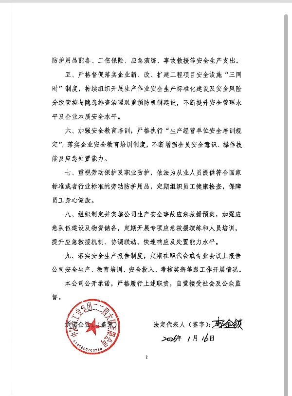 中陜核工業(yè)集團二二四大隊有限公司安全生產承諾書