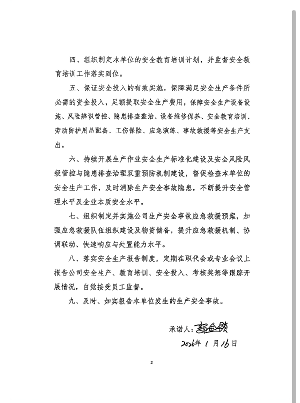 中陜核工業(yè)集團(tuán)二二四大隊(duì)有限公司企業(yè)主要負(fù)責(zé)人安全生產(chǎn)承諾書